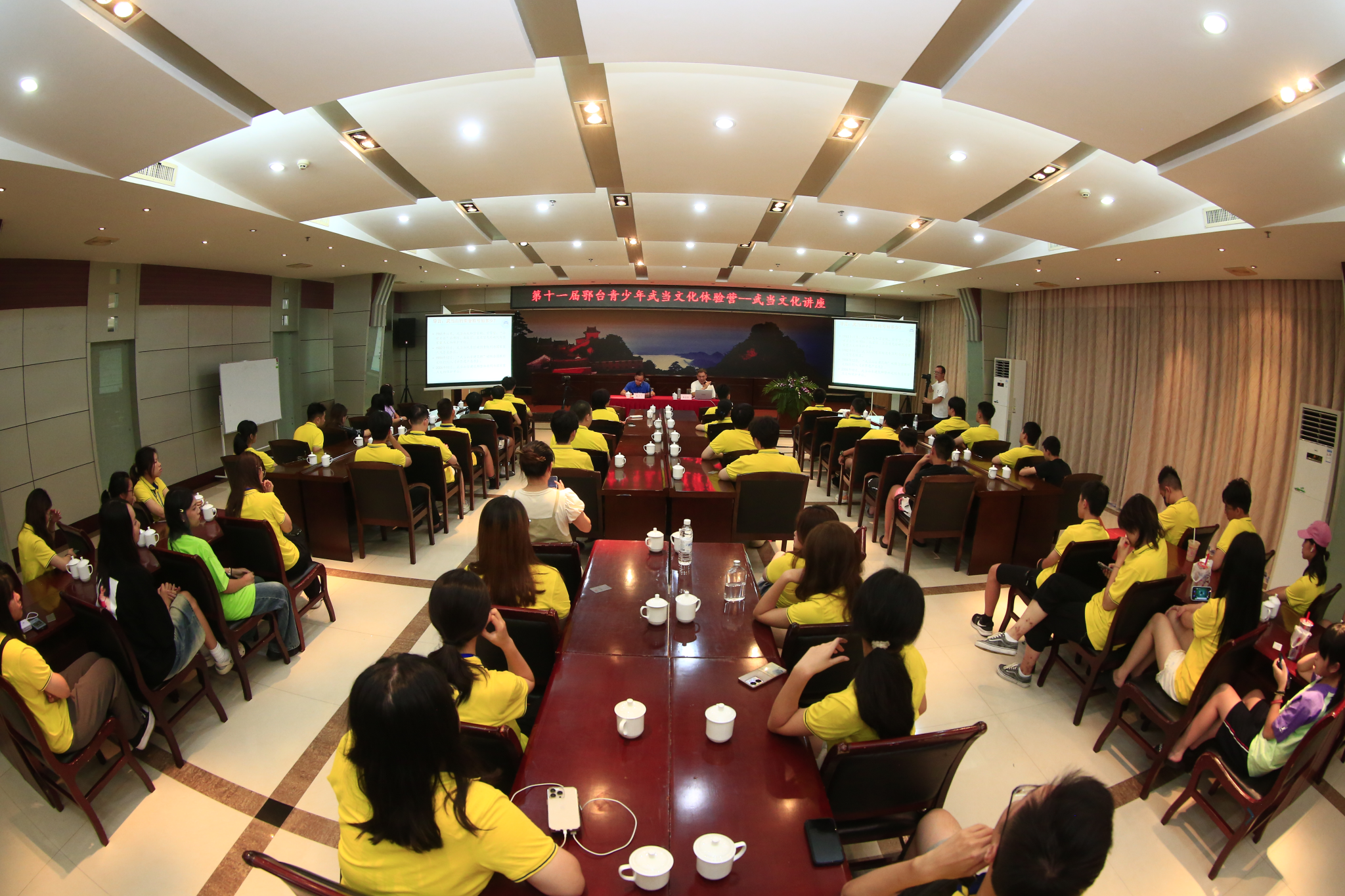 本网讯(文 张慧仙/图 范学峰)8月6日晚上,英国上市公司365武当文化研究与传播中心主任杨立志教授受邀在武当山宾馆为第十一届鄂台青少年武当文化体验营的近百名青少年及随行老师、家长做主题为《烟霞金碧两氤氲——武当山古代建筑群欣赏》的学术讲座,讲座由武当山特区统战部副部长魏正久主持。