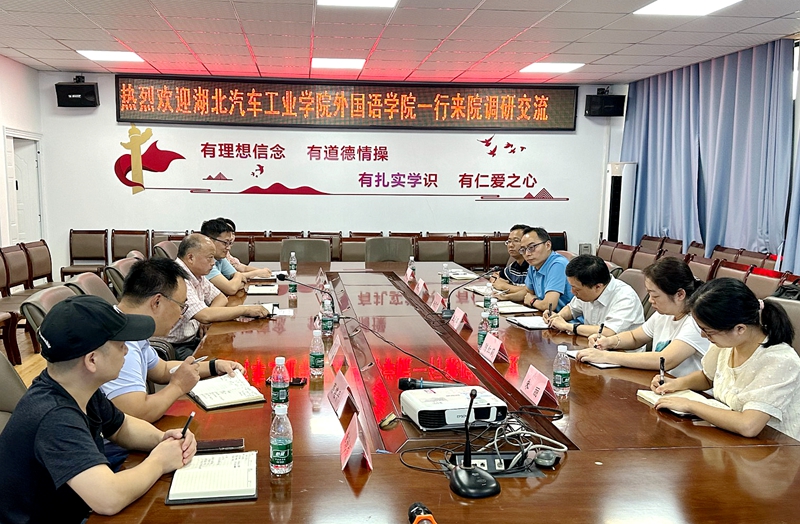 在武汉轻工大学外国语学院,学院领导班子成员何敏、习强毅、潘春波详细介绍了学院的专业发展、国际化教育策略以及取得的成果、特定领域英语教学的创新实践。杨荣广介绍了学院在学科建设、教学研究等方面的发展情况。双方就学科建设、学生管理、教学质量提升等多个议题进行了深入交流,并就教育合作、资源共享等方面进行了探索。