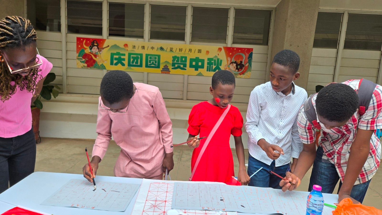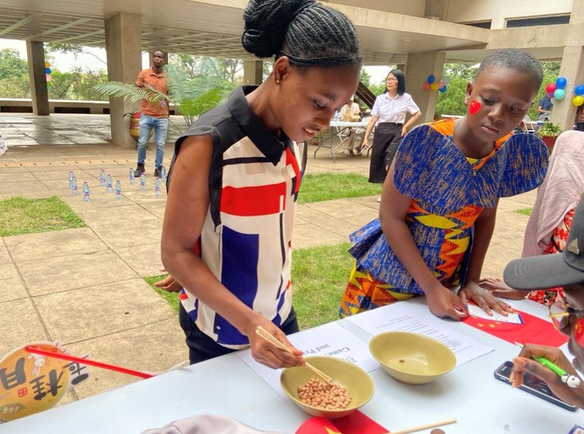 经过前期筹备和当天近2小时会场布置,上午9时,中方院长苏子波与外方院长Daniel Duah共同宣布活动正式开始。苏子波用中文向所有参与者致以亲切问候,并简要介绍了中秋节的传统习俗,还现场教授了“中秋节”“团聚”和“思念”等中文词汇,引发了学生们的热烈反响,他们齐声高呼“中秋节快乐”,现场气氛热烈而温馨。