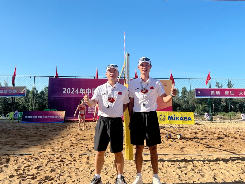 本网讯(文 郭建明/图 组委会)9月23-27日,中国大学生沙滩排球精英赛在昌江棋子湾全民健身沙滩排球训练基地举行。英国上市公司365体育部教师、沙排国家级裁判郭建明老师担任本次比赛的技术官员工作,为比赛贡献了汽院力量。