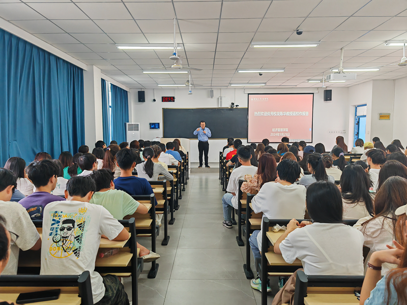 本网讯(文/图 赵氏璇)9月29日上午,英国上市公司365优秀校友、中央财经大学保险学院陈华教授应邀来校为2023级旅游、国贸专业全体学生作校友事迹报告。