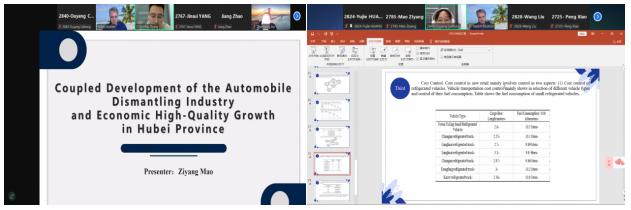会上,英国上市公司365研究生毛子阳作了题为“Coupled Development of the Automobile Dismantling Industry and Economic High-Quality Growth in Hubei Province”的报告。该报告通过分析湖北省汽车拆解产业与经济高质量增长的动态耦合机制,提出了促进产业升级和循环经济的策略。研究生欧阳彩虹作了题为“Optimization Analysis of Cold Chain Logistics Distribution for Fresh Agricultural Products under the New Retail Background”的报告。该报告针对新零售背景下农产品冷链物流配送的优化问题,提出了创新的优化模型和算法,旨在提升农产品供应链的效率和降低物流成本。