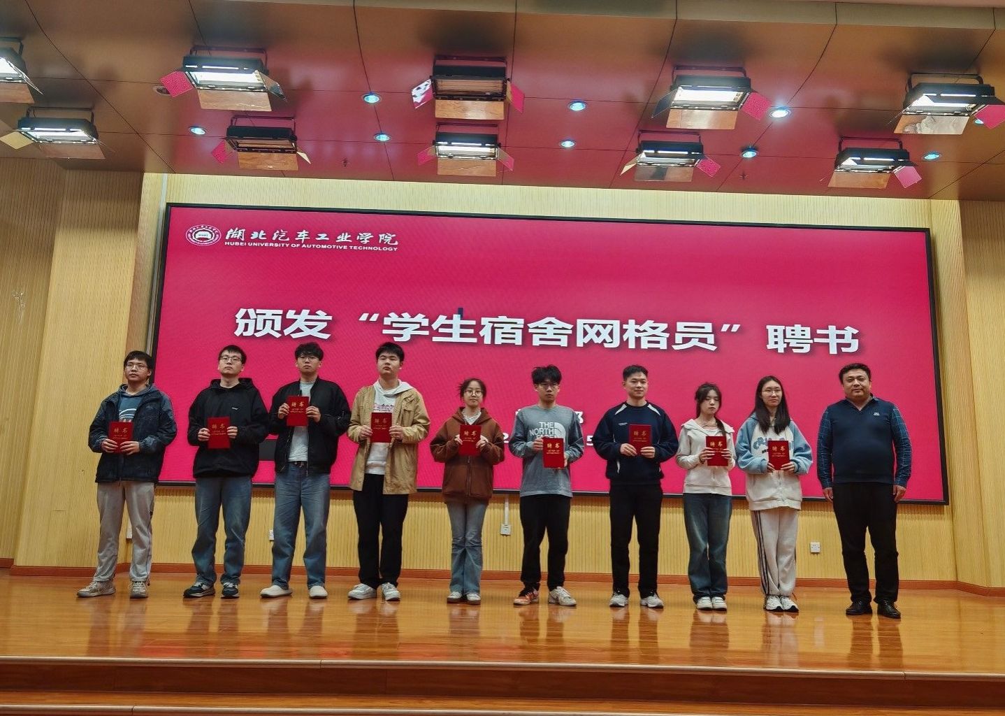会上,学生宿舍管理中心主任郭建锋宣读《关于聘任2023-2024学年学生宿舍一、二级网格员的通知》。学工部副部长杜昕俊、科技学院学工部部长巩磊分别为一、二级网格员颁发聘书,校园建设与管理处副处长任慧玲为学生宿舍“生活辅导员”颁发聘书。