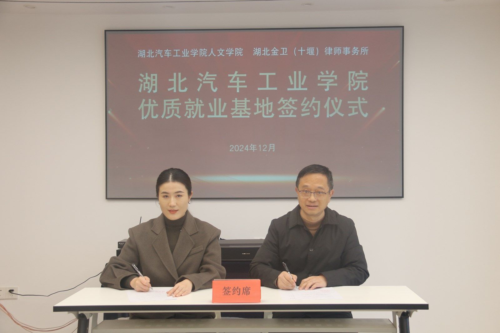 本网讯(文/胡安怡)12月10日,人文学院与湖北金卫(十堰)律师事务所在金卫律所会议室举行优质就业基地协议签订仪式。学院分党委副书记李童、学工办(副)主任胡安怡、法学教师黄钰雯参加了仪式。湖北金卫(十堰)律师事务所主任郑军率校友律师吴丽一同参加。