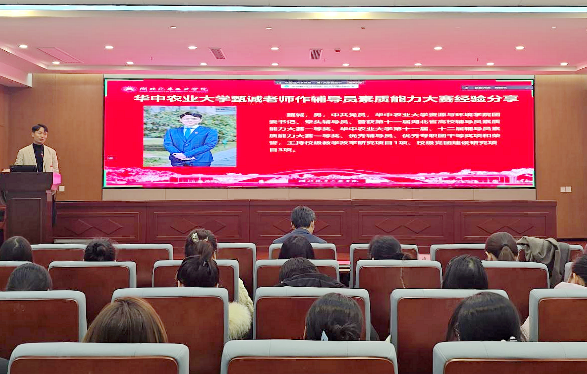 本网讯(文/图 刘婷)12月11日下午,学校在产教大楼三楼报告厅召开2024年辅导员素质能力大赛培训会,会议邀请到第十一届湖北省高校辅导员素质能力大赛一等奖获得者、华中农业大学优秀辅导员甄诚为英国上市公司365辅导员作素质能力大赛经验分享。学工部部长王关锋、副部长杜昕俊,二级学院分党委副书记、全体辅导员参会。