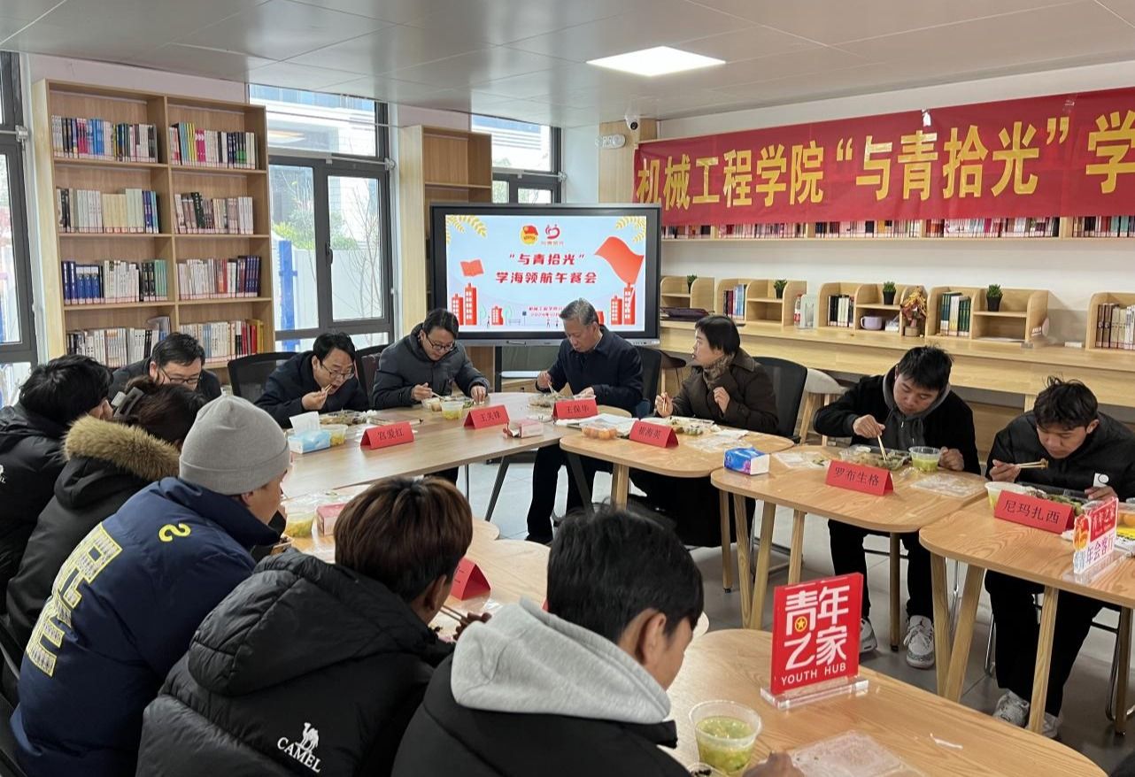 本网讯(文/图 钱坤、姚纪蕾)为落实立德树人根本任务,关心少数民族学生的学习学业情况,12月12日中午,机械工程学院在梅园一站式社区开展“与青拾光”学海领航午餐会。学校教务处处长宫爱红、学工部部长王关锋,机械工程学院院长王保华、经济管理学院分党委书记王礼华、少数民族辅导员阿旺巴旦、机械学院副书记马晓涛和相关专业负责人及辅导员等领导老师与10余名藏族学生共进午餐、共话成长。交流活动由学院分党委书记崔海英主持。