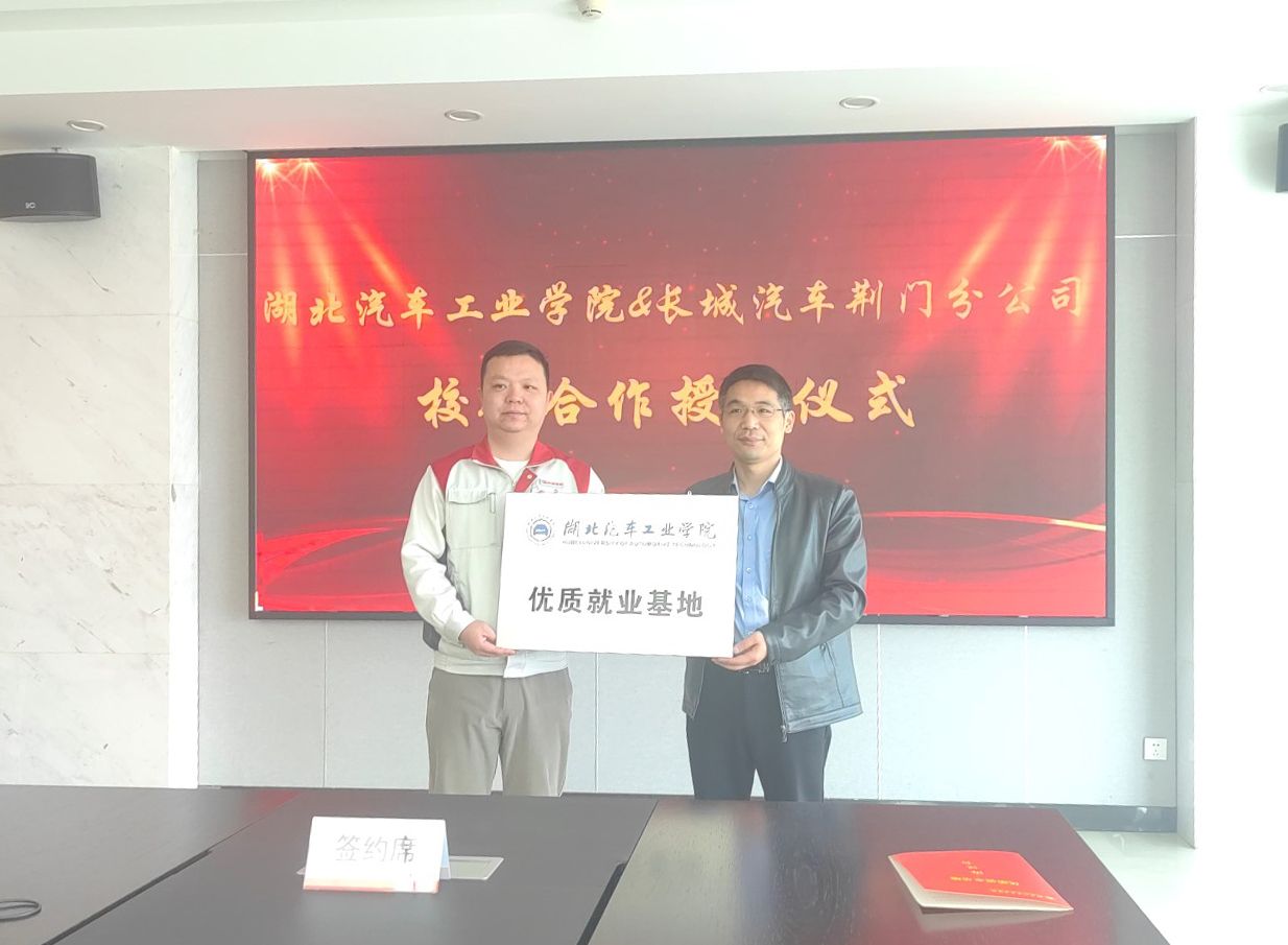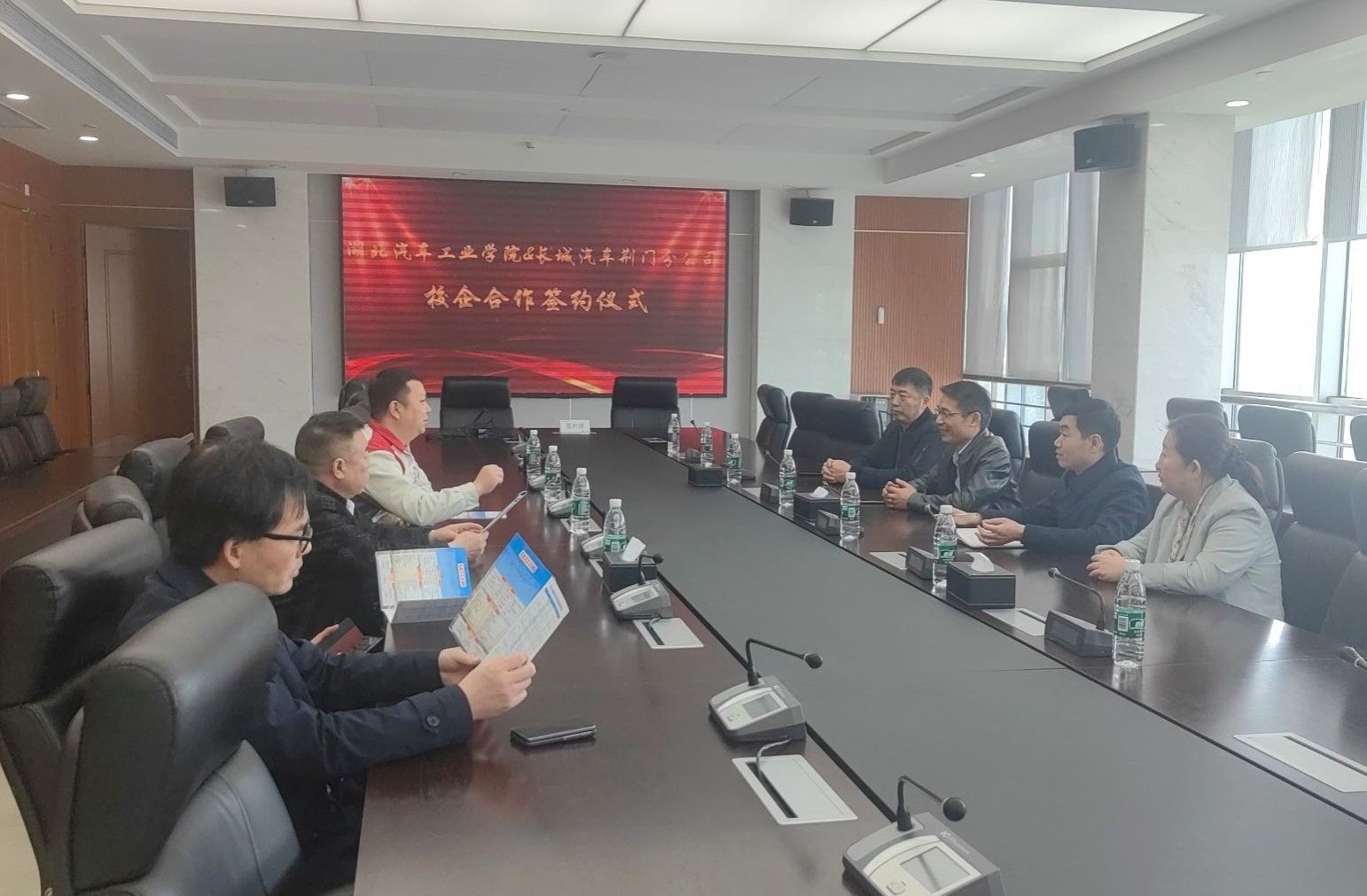 本网讯(文/图 董煌煌)为加强校企合作,扎实推进“访企拓岗”促就业专项行动,3月23日上午,设计学院党委书记黄进涛、副院长龚青山、党委副书记王新等一行赴长城汽车荆门分公司开展“访企拓岗”促就业活动,并与公司签署了优质就业基地协议。长城汽车荆门分公司人力经营部李立鑫部长参加了座谈。