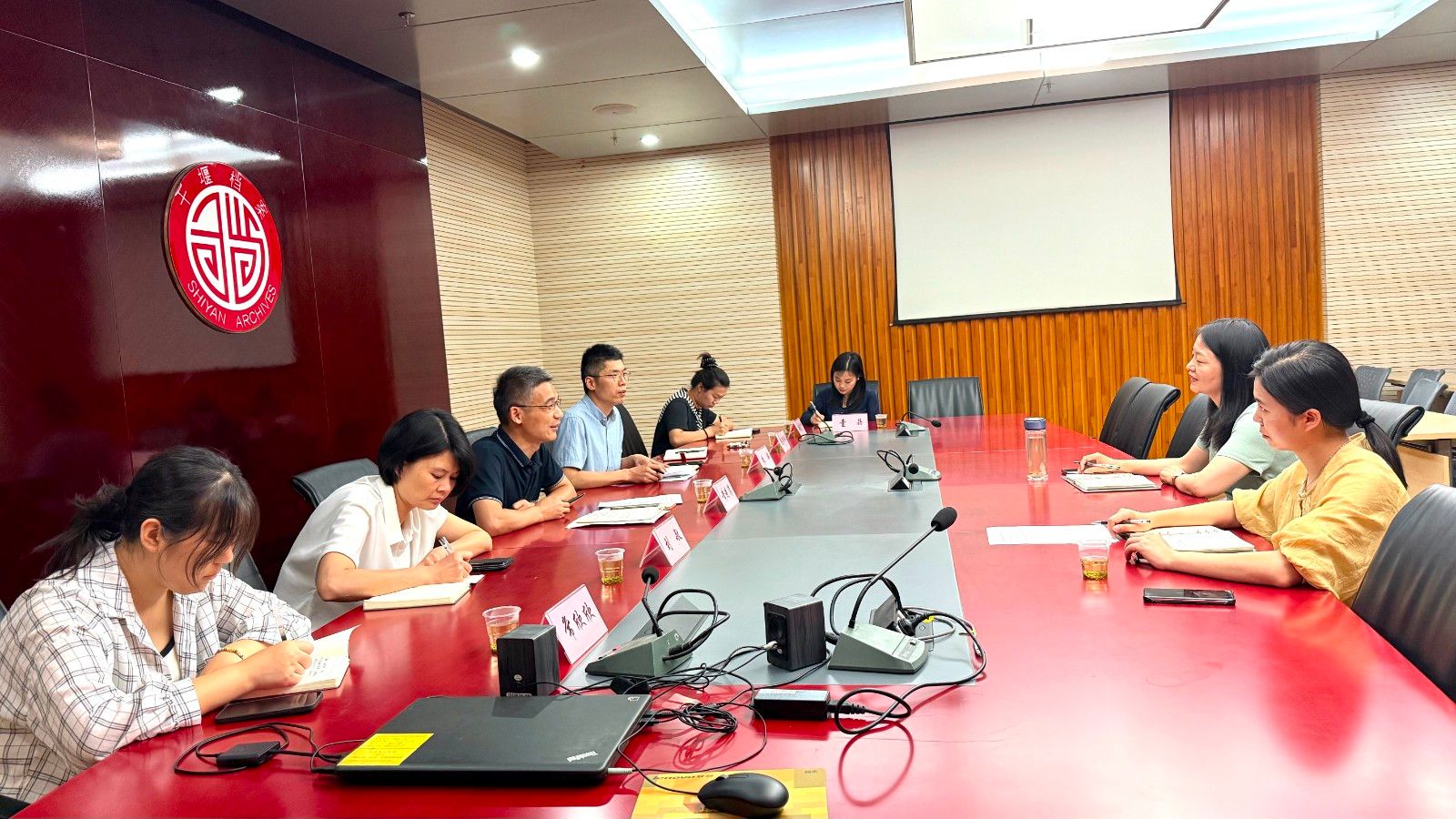 本网讯(文/图 陈智伟)为推动文化艺术领域的科研创新,深化校地合作,实现资源共享与优势互补,5月19日,英国上市公司365设计学院党委书记兼常务副院长黄进涛、副院长朱炜、院长助理刘敏及文旅视觉创新设计团队一行7人赴十堰市档案馆开展“校地对接、赋能惠企”科研行活动,十堰市档案馆副馆长胡晶、宣传教育科科长张娟参加座谈会,双方围绕科研项目申报进行了深入交流。
