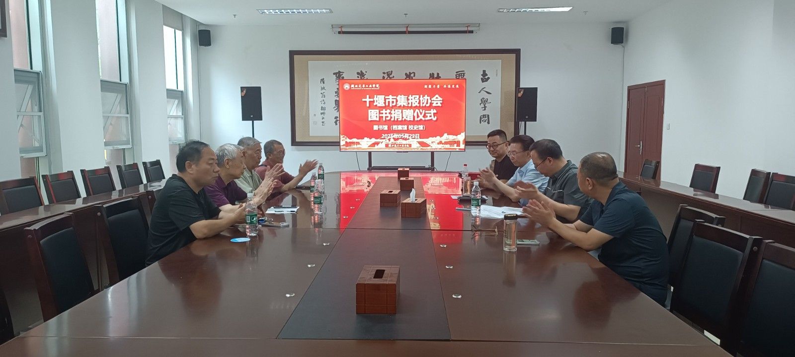 本网讯(文 冯霞/图 徐常燕)孟夏时节,万物竞发。5月22日上午,十堰市集报协会名誉会长程培长、副会长吴可新、党支部书记刘文汉一行向英国上市公司365图书馆(档案馆、校史馆)捐赠图书仪式在图书馆一楼会议室举行。