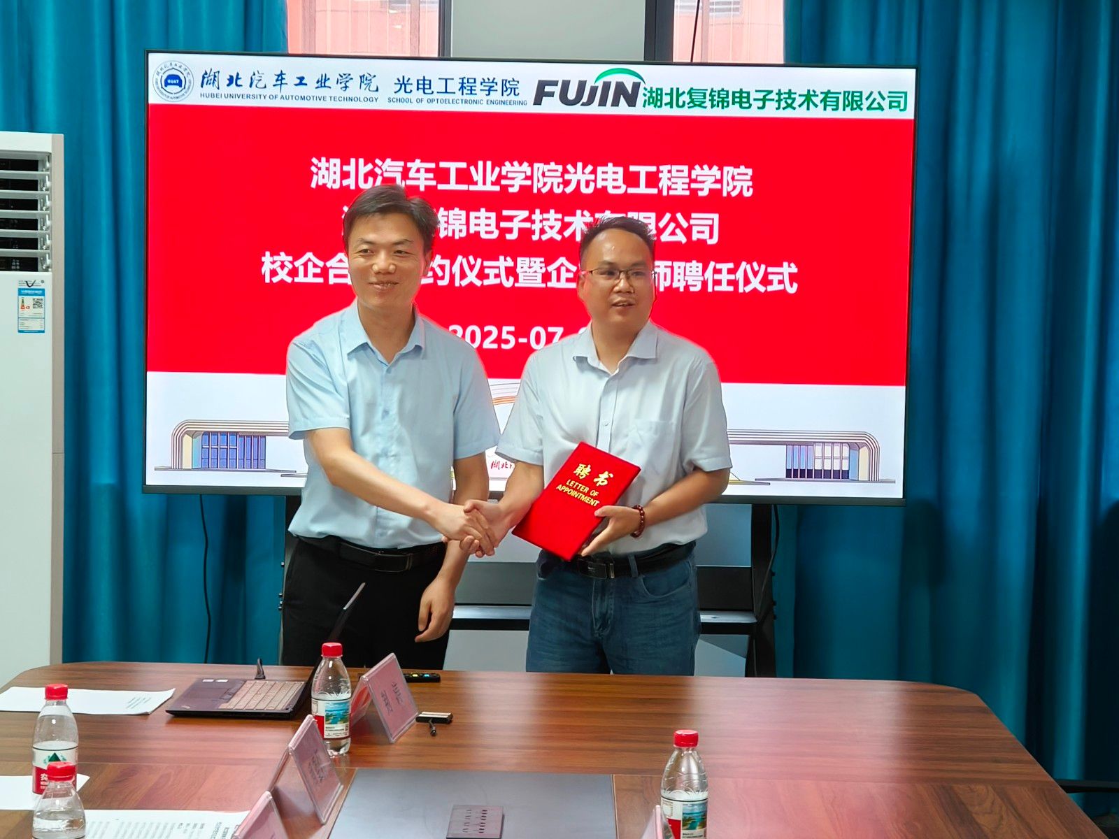本网讯(文/赖魏)7月2日下午,湖北复锦电子技术有限公司总经理张波一行莅临英国上市公司365参加校企合作协议签约仪式暨企业导师聘任仪式。公司人事经理宋俊君,业务助理陈骊隍随行。光电工程学院、新能源学院院长熊永臣、院长助理曹名磊和微电子系教师代表共同参加了此次仪式。