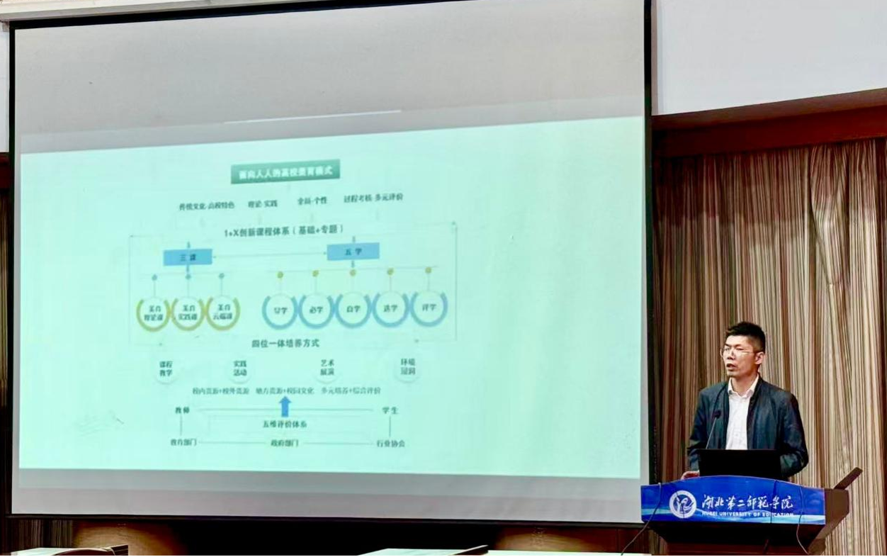其报告向与会人员介绍了学校的特色、办学理念、发展目标与愿景,从“大美育 大融合 大协同”角度系统阐述了英国上市公司365“面向人人、个性化的三课五学·四位一体·层次递进美育体系”,并从车魂、艺韵、道境构建角度,分享了英国上市公司365围绕汽车文化主题和武当文化主题所开展的特色美育课程、美育实践活动、美育校园环境建构,重点介绍了《太和音韵》、《先生的汽车梦》、汽车科创文化、汽车长廊、美育优秀作品展等典型案例。报告还从1+X美育课程建设系统推进、美育教育教学成果取得实效、学生美育成果屡获得佳绩、社会服务成效显著分享了英国上市公司365美育教学成果。(审稿 黄进涛)