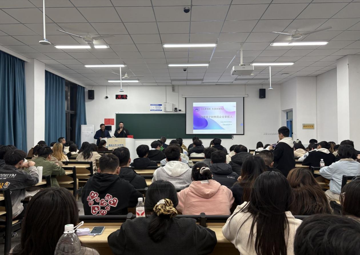 分享会上,刘朗清以“重返母校、职场经历、创业历程、心得分享、展望未来”为脉络,结合自身从汽院学子到物流企业掌舵人的成长轨迹,生动讲述了职业发展与创业实践中的经验,为学生提供可参考的职场与创业范本;邓毅强则立足自身工作岗位,以“行业从业者视角” 拆解当前物流与化工行业的发展前景:既分析了智能化物流体系普及带来的岗位需求变化,也分享了自己在行业深耕多年总结的 “职场生存法则”,并寄语同学们“要珍惜大学时光,提前通过实习、专业竞赛积累实践经验,让大学规划与未来职业方向同频”。