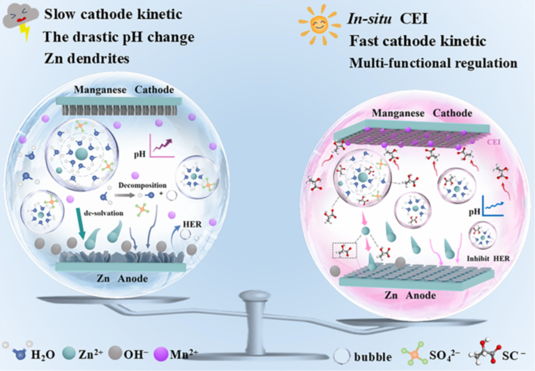 传统锂离子电池因有机电解液易燃特性,在大规模储能场景中存在爆炸风险。相反,水系锌离子电池以水为电解液,彻底杜绝其在实际应用工况下的热失控问题,本研究立足于国家发展本质安全储能技术的战略需求,有效解决了水系锌离子电池面临的核心难题,与国家落实“双碳”战略、能源安全需求深度契合。