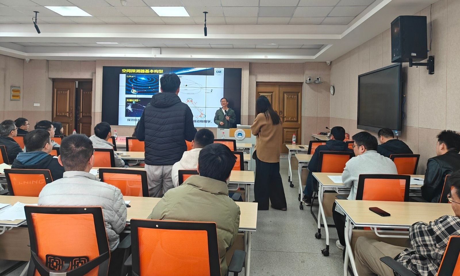 本网讯(文/杨正新、吴晴)11月11日上午,华中科技大学物理学院、国家杰出青年科学基金项目获得者邵成刚教授应邀做客学校“东风讲坛”第一百五十七讲,作了题为“空间引力波探测中的时间延迟干涉技术”的学术报告。光电工程学院、新能源学院领导班子,学院骨干教师、全体研究生及其他学院感兴趣的师生参加了此次报告会,报告会由学院副院长马亚楠主持。