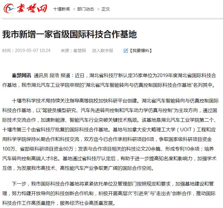 【秦楚网】我市新增一家省级国际科技合作基地