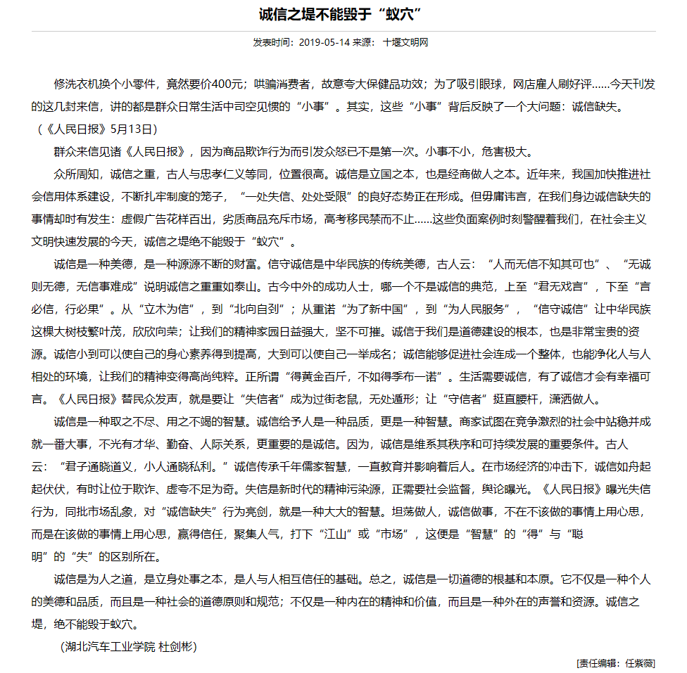 【十堰文明网】诚信之堤不能毁于“蚁穴”