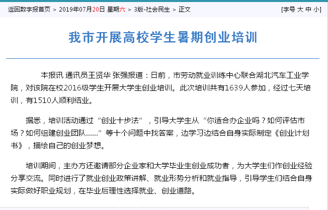 【十堰日报】我市开展高校学生暑期创业培训