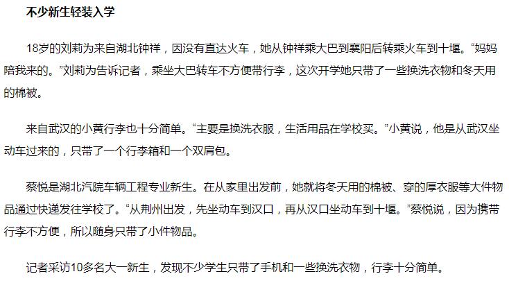 【秦楚网】汽院新生行李里都装些啥?家乡特产、小桌板、英语词典应有尽有