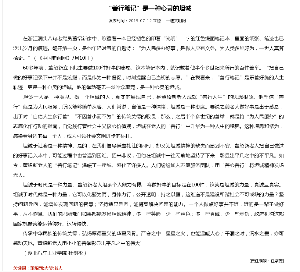 【十堰文明网】“善行笔记”是一种心灵的坦诚