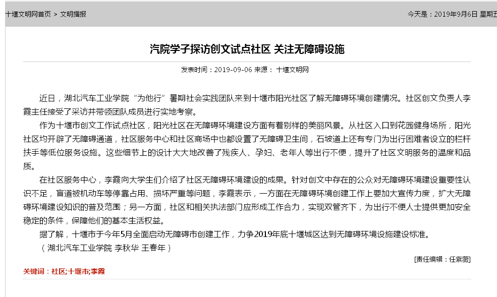 【十堰文明网】汽院学子探访创文试点社区关注无障碍设施