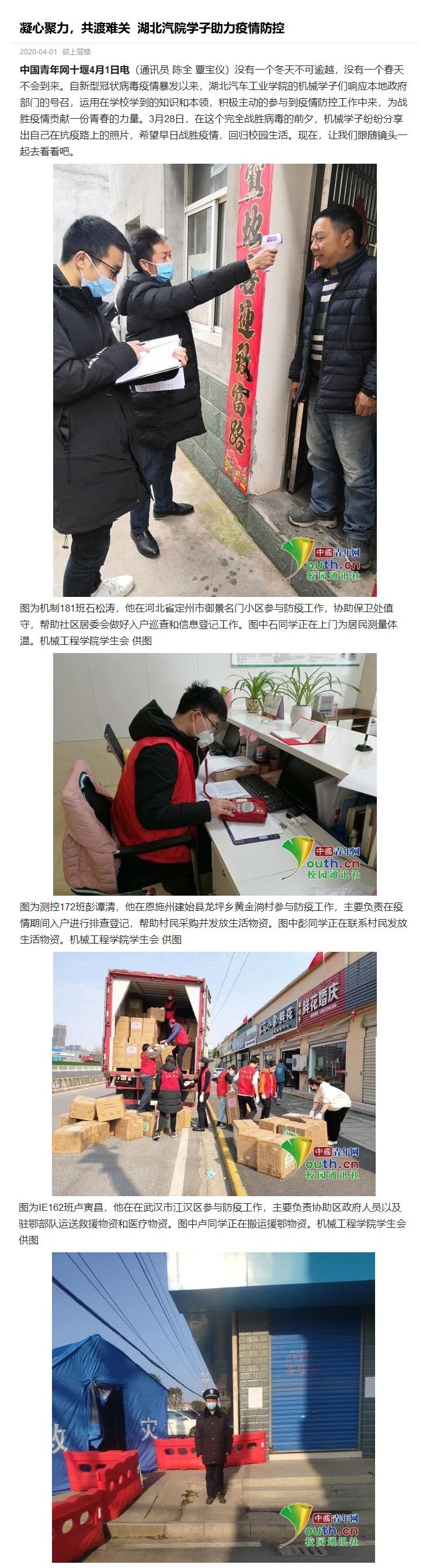 【中国青年网】凝心聚力,共渡难关 湖北汽院学子助力疫情防控