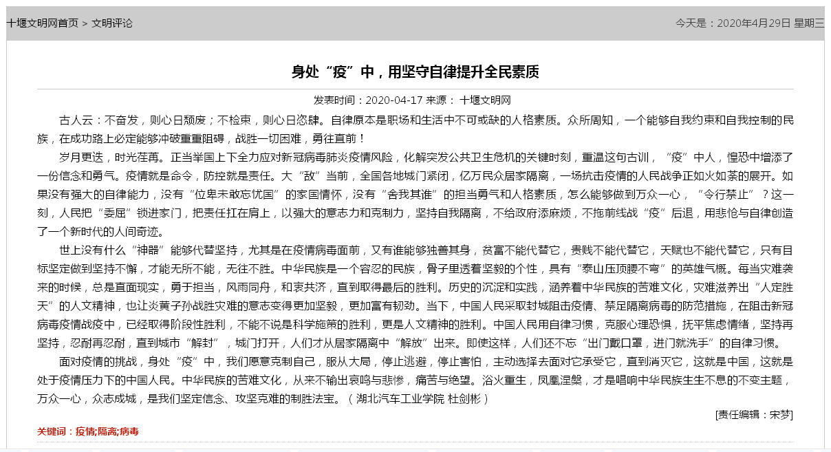 【十堰文明网】身处“疫”中,用坚守自律提升全民素质