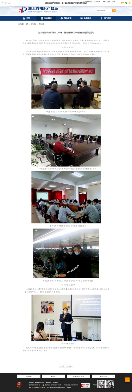 【湖北省知识产权局】湖北省知识产权培训(十堰)基地开展知识产权宣传周系列活动