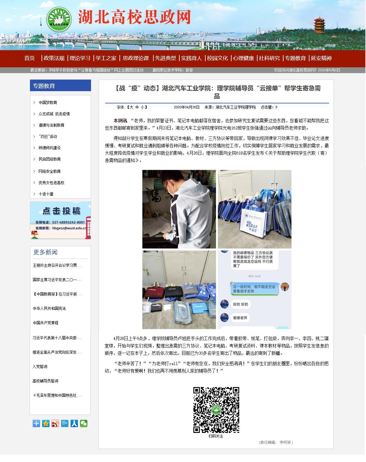 【湖北高校思政网】英国上市公司365:理学院辅导员“云接单”帮学生寄急需品