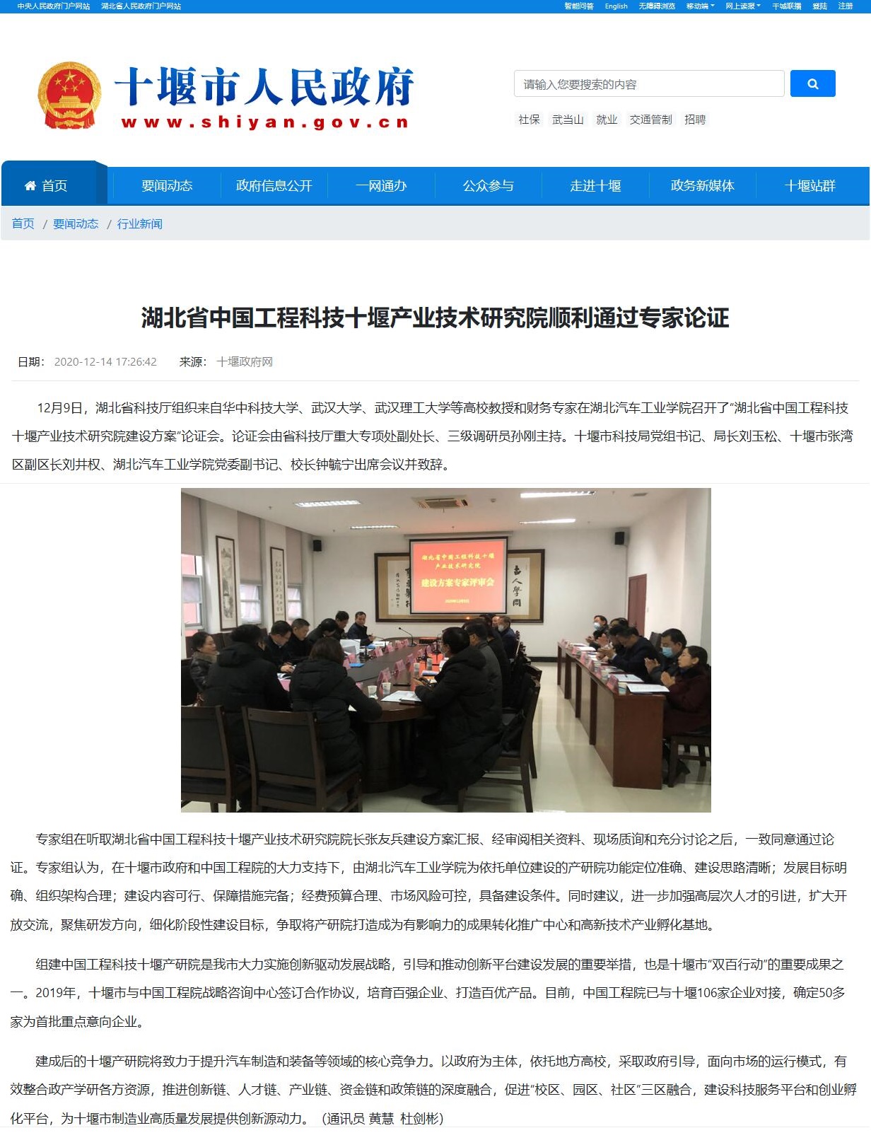【十堰市政府网】湖北省中国工程科技十堰产业技术研究院顺利通过专家论证