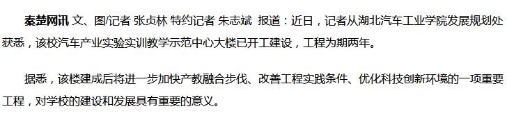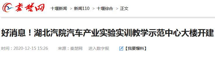 【秦楚网】好消息!湖北汽院汽车产业实验实训教学示范中心大楼开建