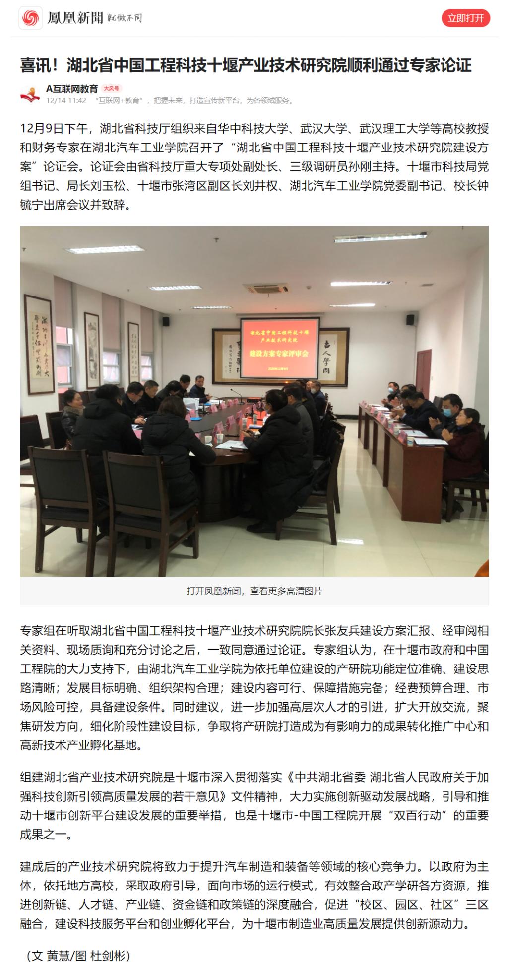 【凤凰】喜讯!湖北省中国工程科技十堰产业技术研究院顺利通过专家论证