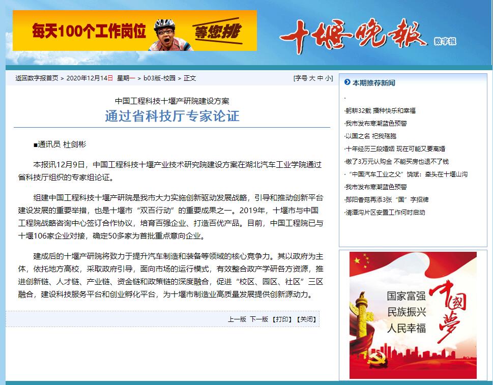 【十堰晚报】中国工程科技十堰产研院建设方案通过省科技厅专家论证