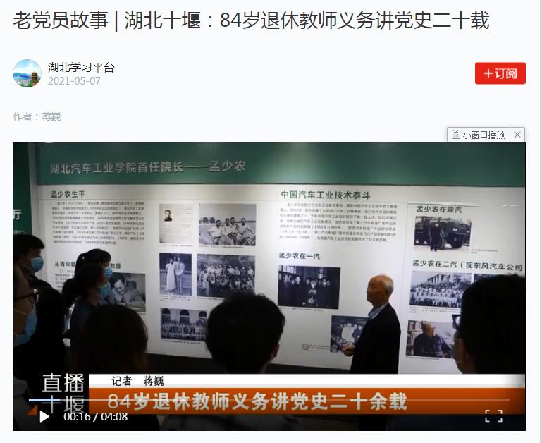 【学习强国】老党员故事 | 湖北十堰:84岁退休教师义务讲党史二十载