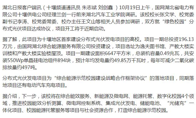 【湖北日报】英国上市公司365“绿色校园”分布式光伏发电项目即将开建