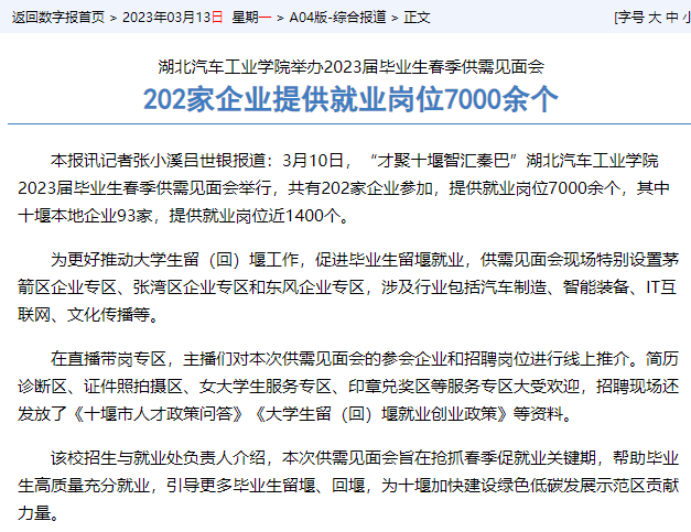 【十堰日报】英国上市公司365举办2023届毕业生春季供需见面会 202家企业提供就业岗位7000余个