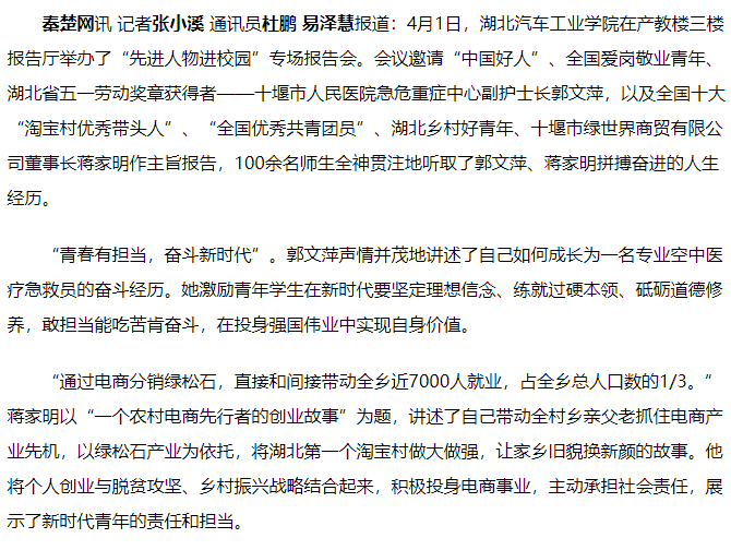 【秦楚网】英国上市公司365举办“先进人物进校园”专场报告会