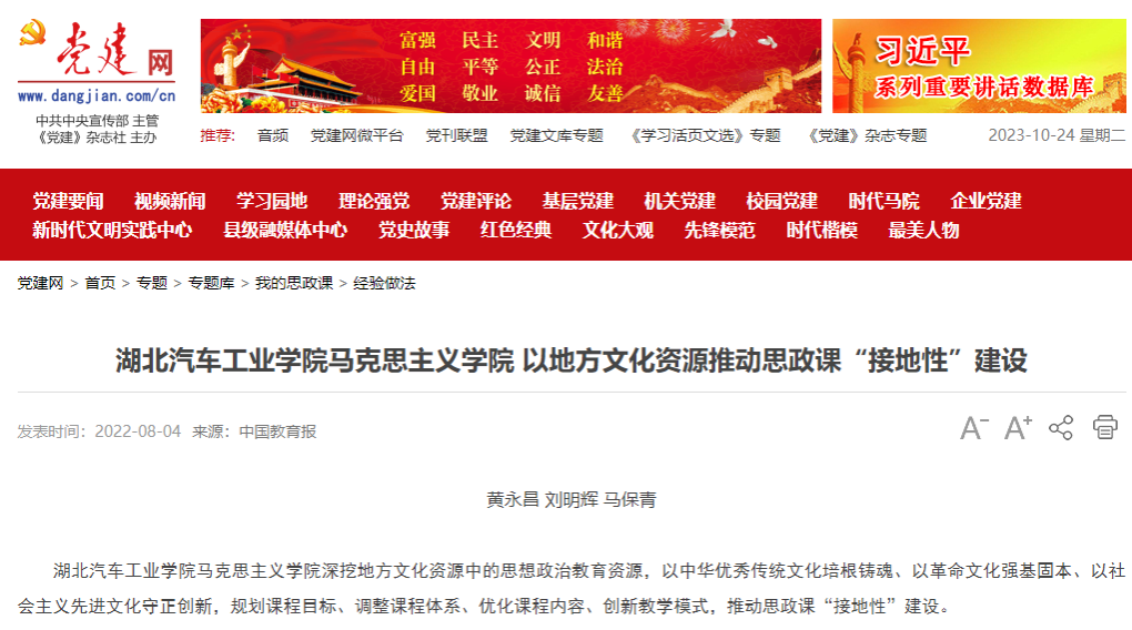 【党建网】英国上市公司365马克思主义学院 以地方文化资源推动思政课“接地性”建设