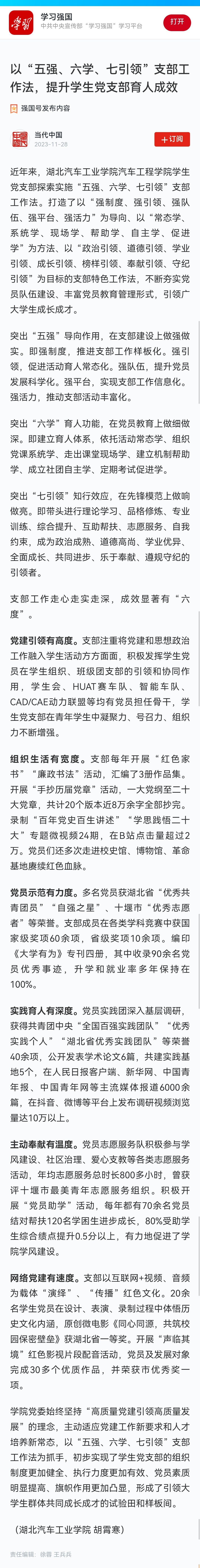 【学习强国】以“五强、六学、七引领”支部工作法,提升学生党支部育人成效