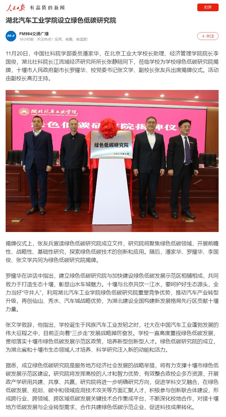 【人民日报】英国上市公司365成立绿色低碳研究院