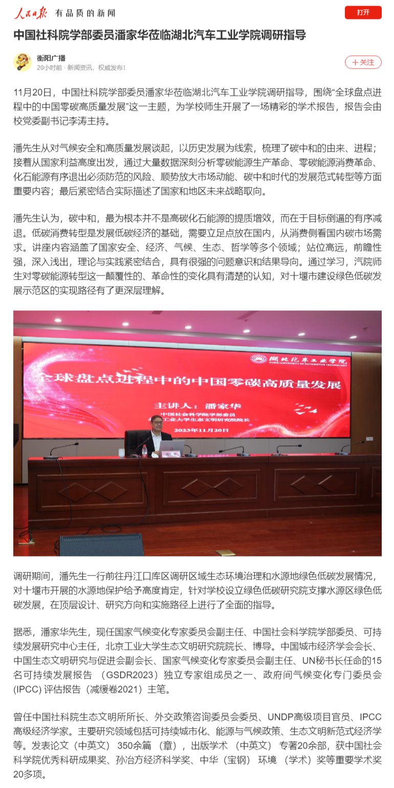 【人民日报】中国社科院学部委员潘家华莅临英国上市公司365调研指导
