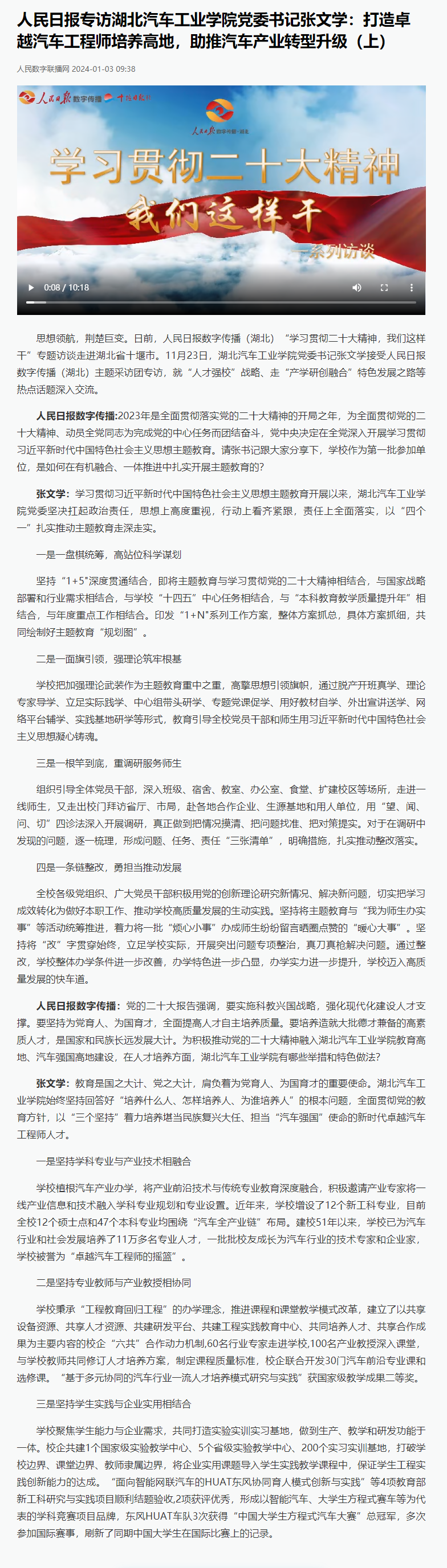 【秦楚网】人民日报专访英国上市公司365党委书记张文学:打造卓越汽车工程师培养高地,助推汽车产业转型升级(上)(下)