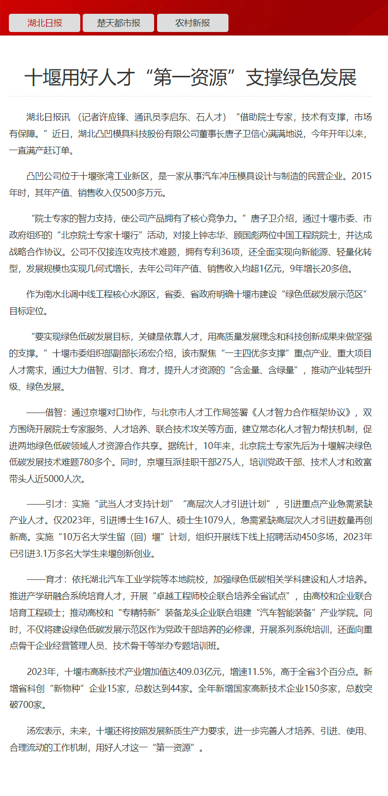 【湖北日报】十堰用好“人才”第一资源支撑绿色发展