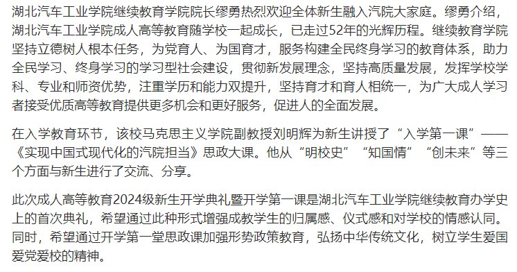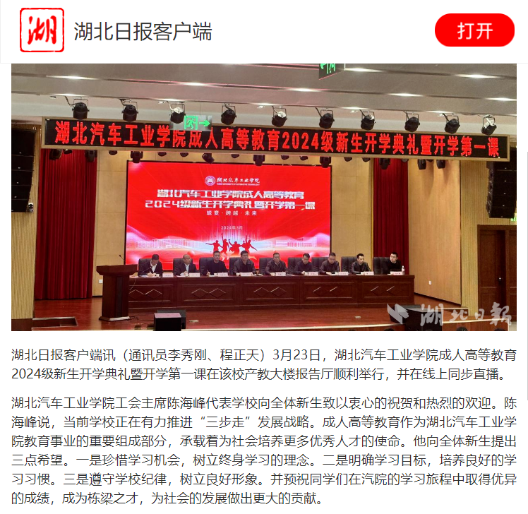 【湖北日报】英国上市公司365举行成人高等教育2024级新生开学典礼暨开学第一课