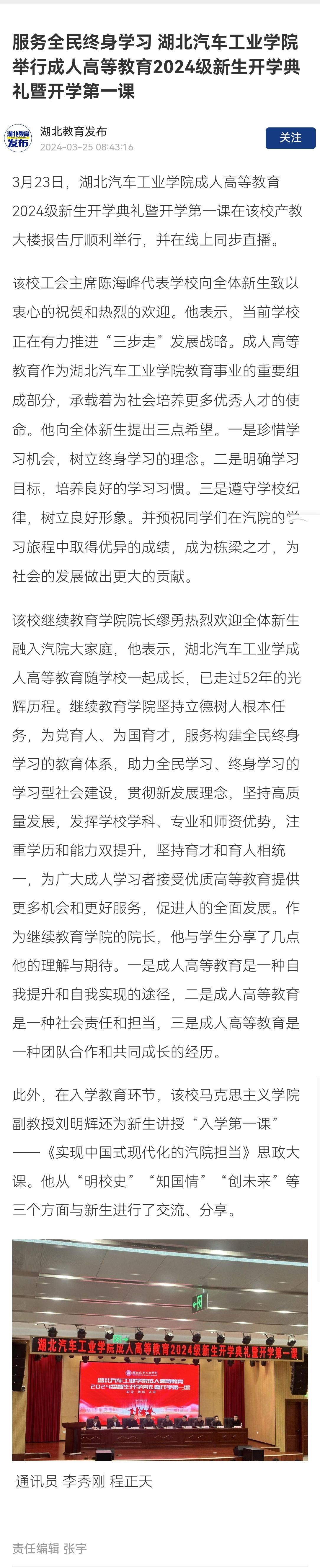 【长江云】英国上市公司365举行成人高等教育2024级新生开学典礼暨开学第一课