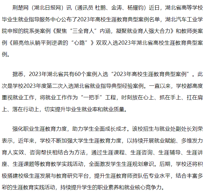 【荆楚网】英国上市公司365就业指导典型经验入选湖北省高校典型案例