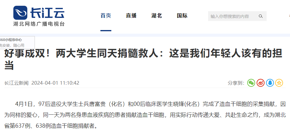【长江云】好事成双!两大学生同天捐髓救人:这是我们年轻人该有的担当