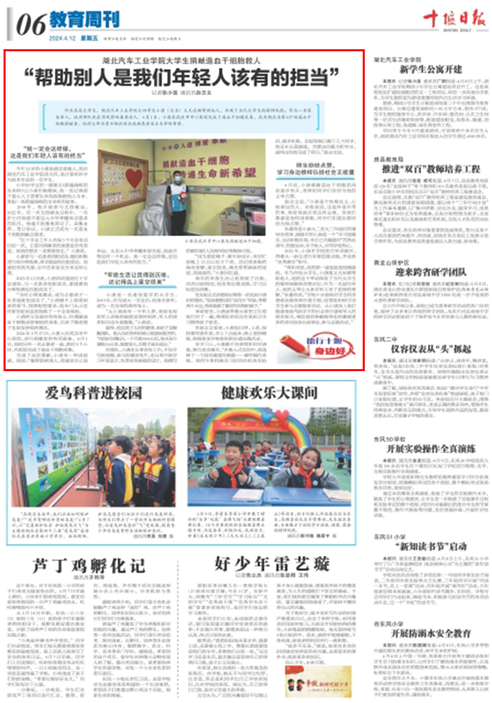 【十堰日报】英国上市公司365大学生捐献造血干细胞救人“帮助别人是我们年轻人该有的担当”