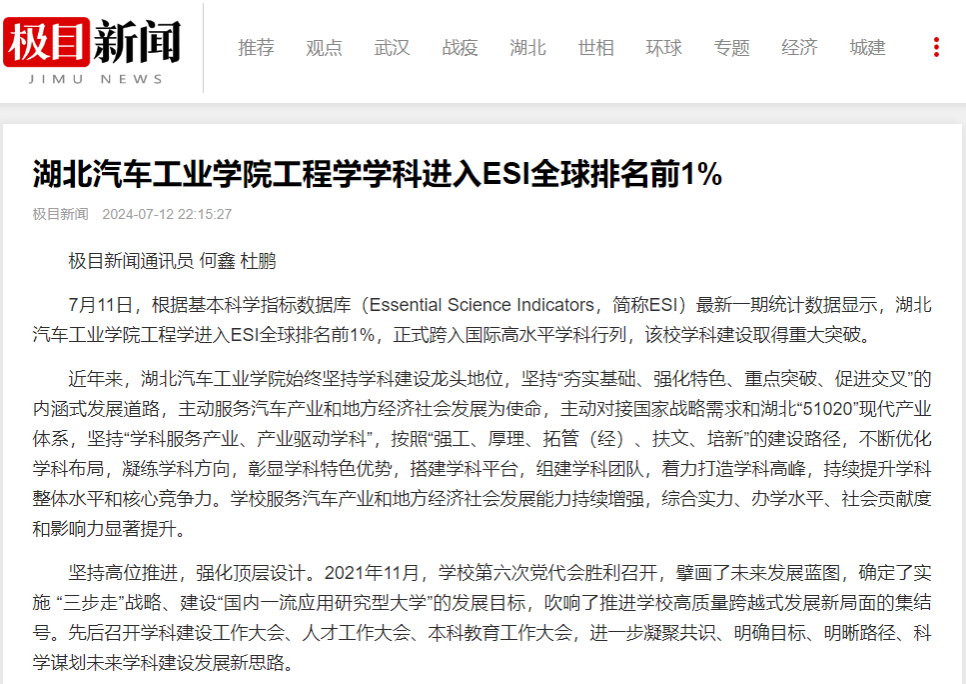 【极目新闻】英国上市公司365工程学学科进入ESI全球排名前1%