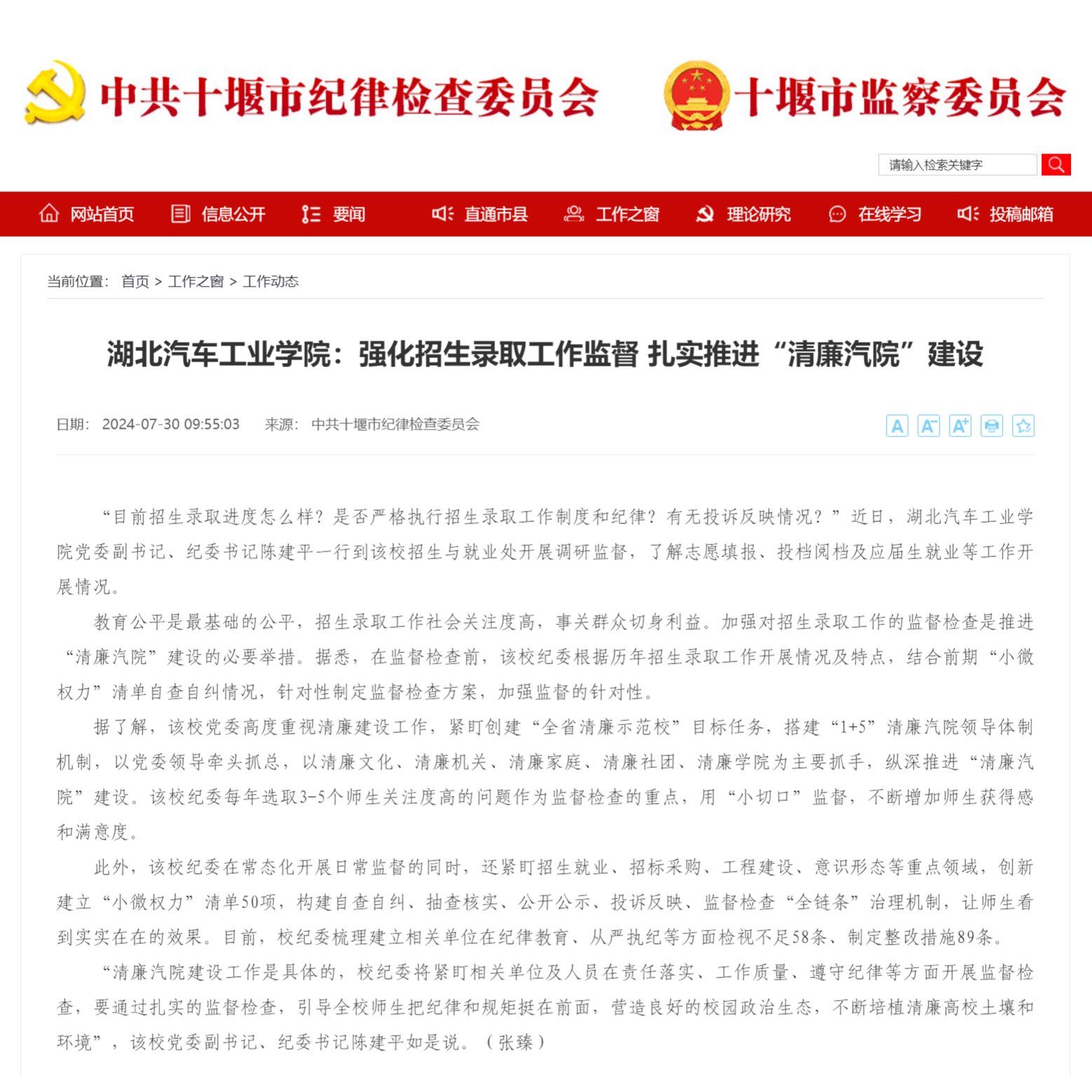 【十堰市纪委】英国上市公司365:强化招生录取工作监督 扎实推进“清廉汽院”建设