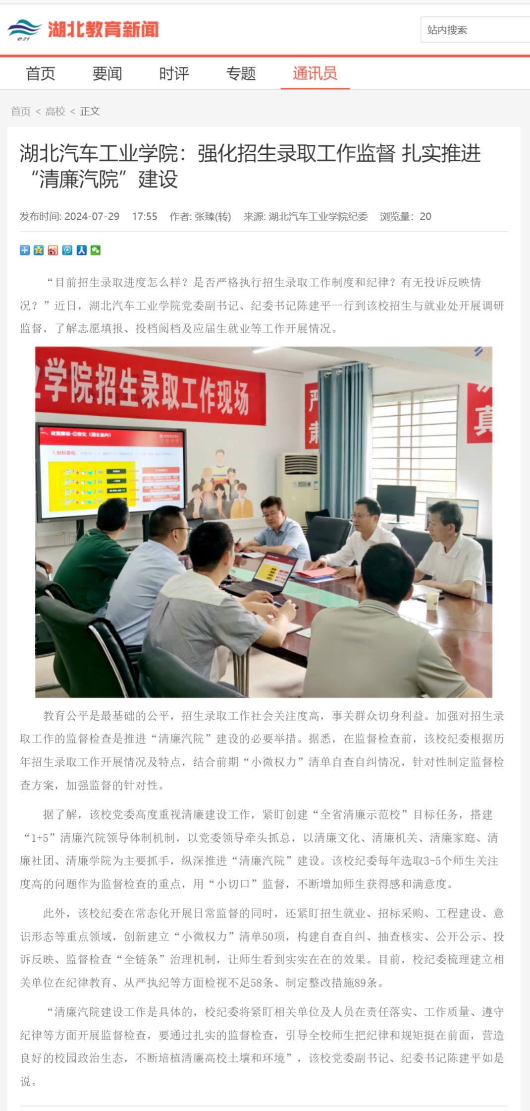 【湖北教育新闻】英国上市公司365:强化招生录取工作监督 扎实推进“清廉汽院”建设
